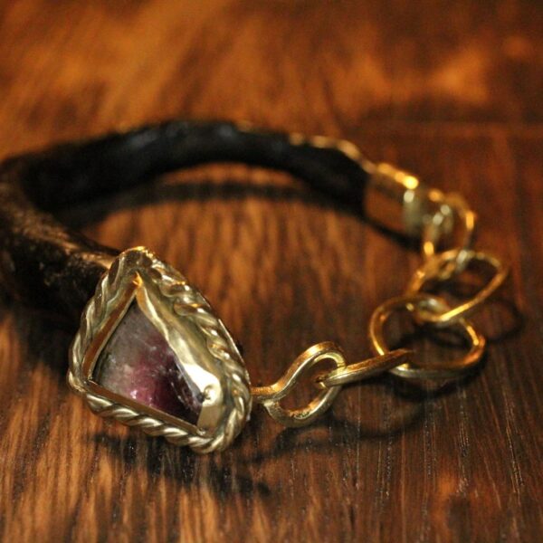 €2.650,00De natuurlijke overloop van de diep paarse amethist, een steen die bekend staat om zijn helende en beschermende eigenschappen, wordt prachtig omlijst door de bamboe blad zetting. Deze combinatie van elementen brengt een harmonieuze balans tussen kracht, bescherming en natuurlijke schoonheid.